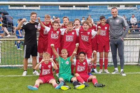Da ist der nächste Pott für unseren Greifswalder FC! Und wir haben uns ganz besonders bei unserer U11 zu bedanken, die ihn mit nach Hause brachte. Dunkel erinnern wir uns noch zurück an den April, wo sich die Truppe von Lars Kampf nach Neunmeterschießen gegen den favorisierten HFC Greifswald durchsetzte und so sehr emotional in dieses Endspiel einzog. Das wurde nun beim Gegner ausgetragen, dem SV Gützkow. Und es sollte ein sehr besonderer Tag werden für die Jungs und Mädels. Zunächst trafen sie sich zum gemeinsamen Frühstück und einer Teambesprechung im Vereinsheim im Volksstadion, ehe es mit den Mannschaftsbussen nach Gützkow ging. Dort waren sie sehr motiviert, mussten aber nach rund zehn Minuten den ersten Rückschlag hinnehmen. Die Gastgeber erzielten das 1:0 und so natürlich den Druck. Aber das brachte unser Team nicht raus. Weitere zehn Minuten später folgte der Ausgleich durch Johann Kampf, der den 1:1-Halbzeitstand besorgte. Nach einer motivierenden Halbzeitansprache der erneute Rückschlag, Gützkow ging nur zwei Minuten nach Wiederanpfiff abermals in Führung. Wieder war es aber Johann Kampf der nur zwei weitere Minuten später wieder ausglich. Danach sollte sich unser Team dann auch für die tolle Leistung an diesem Tag belohnen und aus den guten Angriffen auch Tore folgen lassen. Oskar Scheife brachte uns erstmals in Führung. In der Nachspielzeit machte Jarne Hotopp mit dem 4:2-Endstand dann den Deckel drauf und sicherte uns den Titel! Ein großartiger Erfolg, bei dem Kapitän Cody Müns schlussendlich voller Freude den Pokal in die Höhe stemmen durfte! Herzlichen Glückwunsch!