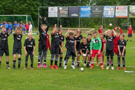 Nicht ganz so gut lief das Kreispokalfinale für unsere U10. Die bekam es mit dem schwerstmöglichen Gegner zu tun, dem älteren Jahrgang von Blau-Weiß Greifswald. Doch auch wenn die Mammutaufgabe eine Nummer zu groß schien, wollte sich das Team von Mario Harder und André Isserstedt davon nicht unterkriegen lassen und nahm die Herausforderung an. Sie kämpften und versuchten dagegenzuhalten, aber man sah leider schnell, dass man sich gerade in den engen Spielsituationen immer wieder im körperlichen Nachteil befand. Blau-Weiß wusste das clever auszunutzen und konterte unsere Jungs gnadenlos aus, sodass es zur Pause bereits 0:5 aus unserer Sicht stand. Es fehlte einfach auch ein wenig das Glück an diesem Tag. Gleich fünf Mal trafen wir das Aluminium, während die Blau-Weißen auch in Halbzeit immer wieder konterte. Ein Treffer gelang uns dann doch, am Ende stand aber eine wohl etwas zu hohe, wenn auch verdiente 1:9-Niederlage zu Buche. Gratulation trotz allem an Blau-Weiß Greifswald zum Pokalsieg. Auch unser 2010’er Jahrgang war am Wochenende unterwegs, fuhr zu einem Turnier des SV Hohen Neuendorf aus Berlin. Es war ein außerordentlich gut besetztes Turnier mit 20 Teams. Nach zwei Siegen und zwei Niederlagen in der Vorrunde landeten wir auf Platz 3, gewannen im Anschluss aber alle weiteren vier Spiele, wodurch wir in der Silberrunde den ersten Platz herausholten. In der Endabrechnung bedeutete das den neunten Platz, mit dem wir durchaus zufrieden sind. Ein toller Saisonabschluss für die Jungs!