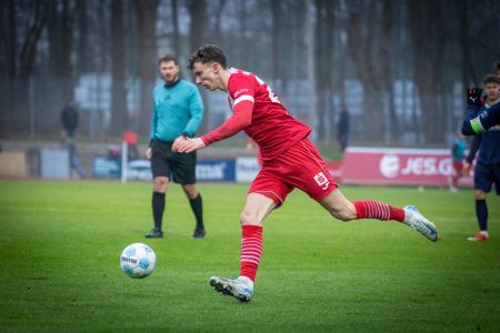Schon nach drei Minuten gab es die erste gute Chance für unseren Greifswalder FC. Benyamina stand am Fünfer und zog ab. Sein Schuss konnte Gästetorwart Hiemann jedoch parieren. Vier Minuten später wurde es dann das erste Mal auf der anderen Seite gefährlich. Gästekapitän Könnecke fasste sich von der Strafraumkante ein Herz, jedoch kein Problem für Jakub Jakubov. Ab der zehnten Minute kam es dann zu einer Reihe guter Möglichkeiten für unsere Greifswalder Jungs, welche tatsächlich in der 1:0-Führung mündeten. Nach einer Ecke landete der Ball bei Atilgan, der diesen Volley nahm und sehenswert einnetzte (16.). Während wir offensiv weiter Druck machten und durch Farr (20.) und zweimal Vogt (21.) zu weiteren guten Möglichkeiten kamen, konnte sich Sanin nach gewonnenem Laufduell auch defensiv auszeichnen (23.). Nach etwas mehr als einer halben Stunde wurde es dann auf Seiten der Gäste noch einmal gefährlich. Könnecke schoss von der Strafraumkante aus aufs Tor. Der Ball lag gut in der Luft, ging jedoch knapp über Jakubovs Tor (33.). Fünf Minuten vor der Pause steckte Heil nochmal zu Benyamina durch, der den Ball an Hiemann vorbei ins Tor beförderte. Aufgrund einer Abseitsstellung Benyaminas pfiff Schiedsrichter Rasmus Jessen die Aktion jedoch ab (40.). Vier Minuten später kombinierte sich Benyamina dann erneut gut in den Strafraum, dieses Mal im Zusammenspiel mit Engel. Bei Benyaminas Abschluss waren jedoch zu viele Gegenspieler im Weg, sodass der Ball am Tor vorbeiging. Die letzte Aktion der ersten Halbzeit war dann ebenfalls auf Seiten unseres GFC: Hiemann war aber erneut zur Stelle, sodass es mit einem 1:0 in die Pause ging (45+1.).