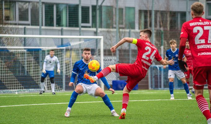 Ungewohnt ging es am Donnerstagabend für unseren Greifswalder FC in der Regionalliga Nordost ran. Bei der U23 vom FC Hansa Rostock siegten unsere Kicker mit 1:0. Vor 3.500 Zuschauern erzielte David Vogt das goldene Tor zum Sieg nach einer knappen Stunde.