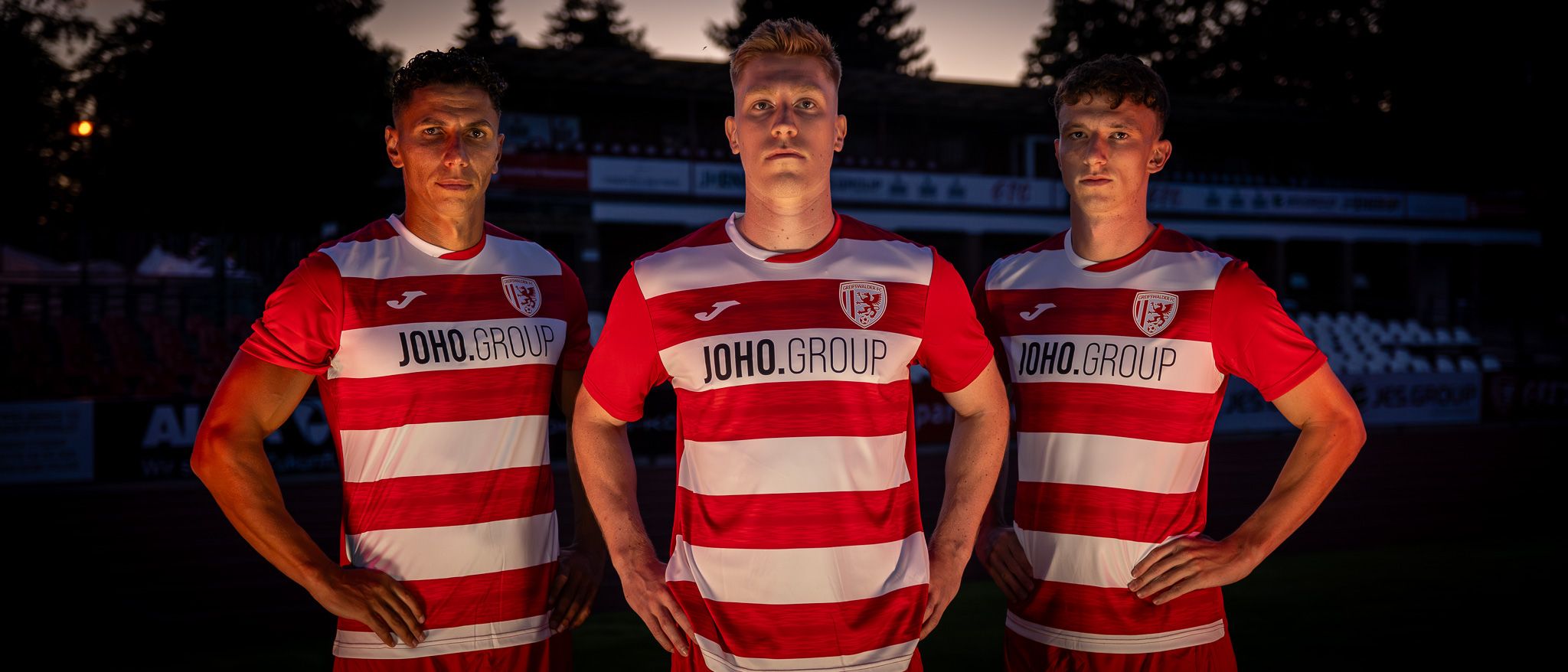 Endlich ist es da, unser neues Heimtrikot! Kraftvolle Querstreifen in leuchtendem Rot und Weiß, dazu das klare, horizontale Design, das durch die dezenten, aber markanten Details wie das Vereinswappen auf der Brust und das Logo unseres Partners „JOHO.Group“ ergänzt werden – perfekt platziert und stilvoll integriert.