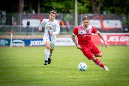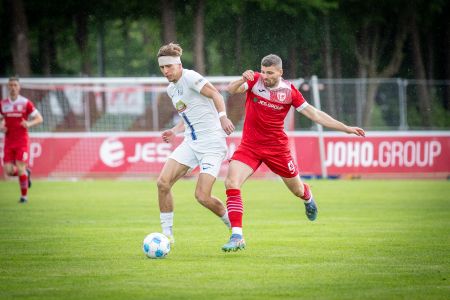 Die ersten Chancen der Partie gehörten unseren Greifswaldern. Erst war es Benyamina, der einen Diagonalball in den Rückraum zu Kocer legte. Eilenburg-Keeper Edelmann war schnell unten und parierte stark (11.). Nur eine Minute später bediente Benyamina dann wiederum Kocer, der abzog. Wieder war Edelmann da (12.). Und Vogt hatte nach 18 und 20 Minuten die nächsten Abschlüsse, die ohne Erfolg blieben.