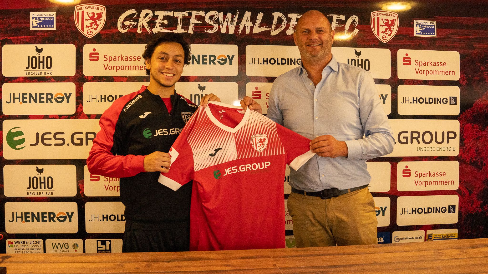 Für Wilmer Andrés Cabrera wird mit dem Wechsel zu unserem Greifswalder FC ein kleiner Traum wahr. „Ich wollte immer schon in Europa spielen und habe mir oft Gedanken gemacht, welches Land dafür am besten wäre. Ich dachte dabei sofort an Deutschland. Ein Land, das die Weltmeisterschaft vier Mal gewonnen hat und regelmäßig Weltklassespieler hervorbringt. Ich habe viel gearbeitet, um mal die Chance in Deutschland zu bekommen und als der GFC sich meldete habe ich keine Zeit verloren und wollte so schnell wie möglich kommen“, erzählt der 23-Jährige. Er wolle nun vom deutschen Fußball lernen um als Mensch und Spieler weiter zu wachsen. Besonders freue er sich dabei auch eine neue Sprache und Kultur kennenzulernen. Bei unserem Greifswalder FC möchte er nun natürlich durchstarten. „Als Offensivspieler ist es immer mein Ziel Tore zu schießen und vorzubereiten, eine Gefahr für das gegnerische Tor zu sein. Ich hoffe dem Team dabei zu helfen eine gute Rolle in der Liga zu spielen und dabei möchte ich mich als Fußballer weiter verbessern“, so unser Neuzugang optimistisch. Mit seinen neuen Teamkollegen hat er bereits ein paar Mal trainiert. Er sei dabei sehr herzlich aufgenommen worden und fühle sich bereits als Teil der GFC-Familie. „Das macht den Start in einem neuen Land viel leichter. Auf dem Feld scheinen sie alle sehr talentiert zu sein. Sie haben sehr viel drauf und sind sehr intelligente Spieler. Ich freue mich schon mit ihnen zu spielen“, sagt Wilmer. Und nicht nur im Team, sondern auch in Greifswald fühle er sich sehr wohl. Auch wenn unsere schöne Hansestadt deutlich kleiner ist, als er es gewohnt ist. „Aber ich mag das. Es ist ein wirklich schöner Ort mit tollen, historischen Bauwerken. Ich freue mich schon von deren Geschichte zu lernen“, sagt Cabrera abschließend. Und wir freuen uns dich noch näher kennenzulernen, Wilmer und können es kaum erwarten, dich auf dem Platz zu sehen. Willkommen in Greifswald!