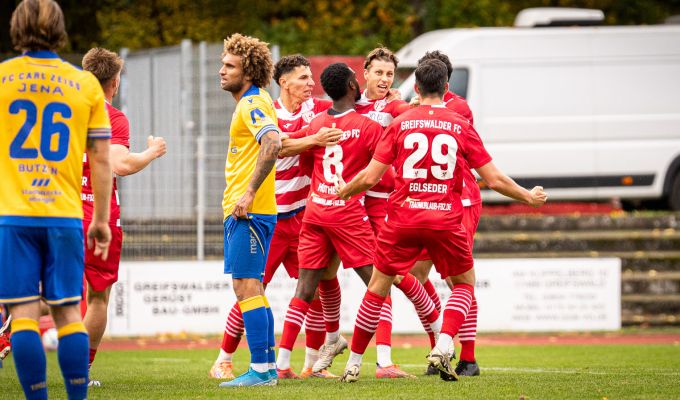 Man muss schon zugeben, auf die Zusammenfassungen der Jena-Spiele freut man sich in dieser Saison immer wieder besonders – natürlich ganz speziell die der Heimspiele. Das Stadion im Paradies in Jena ist ein absolutes Schmuckstück und die Fans machen eine fantastische Stimmung, auch wenn es hier und da mal ein paar kleine Missverständnisse mit Fluchtwegen gibt. Die Mannschaft wird davon getragen und hat mit Spielern wie Kevin Lankford und Manassé Eshele genau die richtigen Neuzugänge für das Spiel von Volkan Uluc verpflichtet. Es sind Jungs, die arbeiten und anderen ermöglichen zu glänzen. Und Uluc selbst, der weiß genau, wie er eine Mannschaft erfolgreich macht. Der Trainerfaktor ist hier nicht zu unterschätzen, Uluc gehört zu den Coaches, die eine Mannschaft sehr stark prägen. Er macht dieses Jahr vieles richtig, aber in Greifswald, muss Uluc erst mal gewinnen.