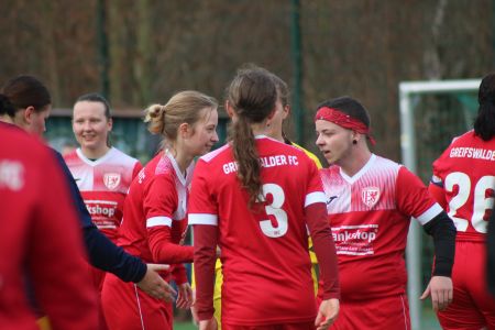Zur Pause war das Trainerteam mehr als zufrieden. Die Mädels waren auf dem Platz laut, kommunikativ und strahlten ein Gefühl der Sicherheit aus. Almuth Krüger fügte sich gut in die Mannschaft ein und hielt zusammen mit Jule Börger und Lena Swiatek die Gefahr nach dem Rückstand relativ gut vom eigenen Tor weg. Alle hatten daher das Gefühl, dass dieses Spiel eigentlich nur zugunsten unseres GFC enden konnte. Nach Wiederanpfiff verflachte die zuvor rasante Partie aber ein wenig und Neubrandenburg war etwas besser im Spiel. Klare Torchancen gab es in dieser Phase kaum noch und wenn doch, dann war Maike Hildebrandt im GFC-Tor hellwach und zur Stelle. Als es dann doch nach einem Remis aussah, machte Isabelle Kilimnik Druck auf die gegnerische Verteidigung. Der Rückpass rutschte der Torhüterin dann über den Fuß und rollte ins eigene Tor. Knapp fünf Minuten vor dem Ende gingen unsere Mädels also tatsächlich in Führung und wollten nun natürlich den zweiten Saisonsieg eintüten. Nur eine Minute später war es dann Leonie Tebrügge, die tatsächlich den Deckel draufmachte. Sie stibitzte einer Neubrandenburgerin den Ball, haute ihn aus der Distanz ins Netz und krönte damit ihre bärenstarke Leistung. Nach dem 3:1 für unsere zweiten Frauen passierte dann nichts mehr und somit setzte sich unser GFC erneut gegen ein Team aus Neubrandenburg durch. Für Almuth Krüger gab es somit dann doch noch das Happyend und einen Sieg zum Abschied von unserem Greifswalder FC. Wir wünschen ihr an dieser Stelle nochmal alles Gute und viel Erfolg auf ihrem weiteren Weg! Für unsere Kreisoberligistinnen steht dann am 13. Dezember die Hallenkreismeisterschaft an, los geht es ab 15 Uhr in der Sporthalle 3 in Greifswald.