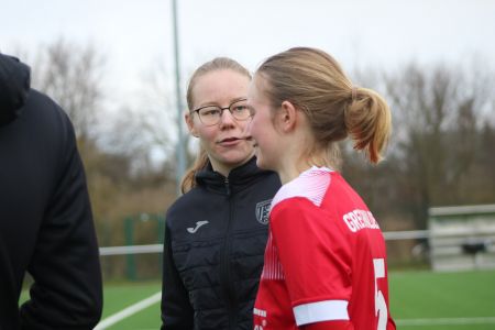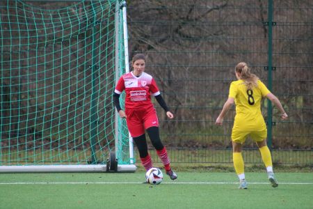 Der Frust dürfte tief gesessen haben bei Almuth Krüger, als das Spiel unserer ersten Frauen gegen den TSV 1860 Stralsund abgesagt wurde. Seit viereinhalb Jahren ist die Innenverteidigerin bei unserem GFC und verlässt den Verein leider im Winter. Natürlich hatte sie sich noch ein Spiel zum Abschied gewünscht und dankenswerterweise durfte sie dann kurzfristig bei unseren zweiten Frauen im Spiel beim 1. FC Neubrandenburg II aushelfen. Das Team kam relativ ersatzgeschwächt zum Kreisoberligaspiel und da kam die Hilfe aus der Ersten wie gerufen. Nach den eher mäßigen Spielen der Hinrunde wollte das Team von Fabian Stei und Amira Haftendorn das Jahr 2025 in der Liga mit einer guten Leistung abschließen und war dieses Mal von Beginn an hellwach. Von einer sonst zumeist eher verschlafenen ersten Hälfte war nichts zu sehen. Die erste Viertelstunde ging ganz klar an unsere Zweite, die ihre Chancen jedoch nicht zu nutzen wusste. In der 15. Minute nutzten wiederum die Gastgeberinnen dann leider ihre erste Gelegenheit direkt zur Führung. Das brachte unsere Mädels aber nicht ins Stocken. Sie spielten richtig gut weiter und zeigten dabei ein großartiges Zusammenspiel. Immer wieder wurde das Spiel breit gemacht und so Lücken gerissen. Auf diese Weise fiel dann nach knapp einer halben Stunde auch der Ausgleich, als Luke Stahnke, der einen Sahnetag erwischte, die Verteidigung und auch Torhüterin an sich band und Isabelle Kilimnik so eine freie Bahn verschaffte. Die wemmste das Leder ansatzlos ins Tor und stellte den 1:1-Halbzeitstand her.