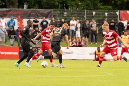 In den zweiten Durchgang startete unser Team gegen eine neu formierte Rostocker Mannschaft erneut mit viel Schwung. Wagner schlug den Ball lang zu Richardson, der ließ mit der Brust abtropfen und Hüther verwertete (50.). Wieder ein schönes Tor! Doch wieder dauerte es nicht lange, ehe Hansa traf – und wieder war es mehr als vermeidbar. Ein Freistoß landete am zweiten Pfosten, von wo aus der Ball plötzlich einmal gefühlt an alle Abwehrbeine sprang, die sich m Fünfmeterraum befanden. Am Ende der Szene bugsierte Eglseder den Ball beim Klärungsversuch ins eigene Netz. Was für eine verrückte Szene. In der Folge wechselte der GFC häufig und so wurde viel Spielfluss herausgenommen. Hansa machte zwar vermehrt das Spiel, Chancen gab es aber auf beiden Seiten nicht mehr. So verlor der GFC mit 2:3. Zum nächsten Testspiel ist unser Team am Mittwoch um 14 Uhr bei Energie Cottbus zu Gast.