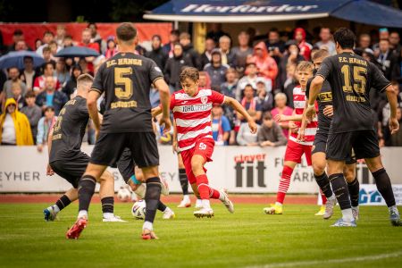 Nur zwei Minuten später klingelte es dann erneut – leider wieder im GFC-Tor: Einen langen Hansa-Ball klärte Jakubov ins Zentrum, wieder war das Tor leer, sodass diesmal Voglsammer vollendete (24.). Trotzdem spielte der GFC gut mit und war über weite Strecken der ersten Hälfte das bessere Team.